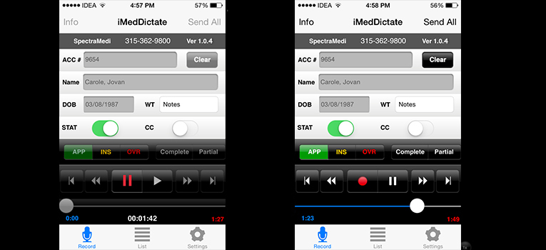 This screen will be displayed when the application is launched by tapping on the iMedDictate icon on your device.
